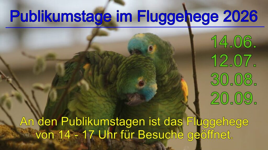 In das Fluggehege für geschädigte Papageien können zurzeit keine weiteren Papageien aufgenommen werden. Alle Möglichkeiten zur Unterbringung von Papageien sind belegt und der Arbeitsaufwand, der vom Tierpflege-Team für die Versorgung der im Fluggehege lebenden – gesundheitlich geschädigten und verhaltensgestörten – Papageien erbracht werden muss, kann nicht weiter erhöht werden.