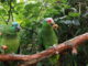 Happy wurde im April 2011 aus einer privaten Einzelhaltung in das Fluggehege übernommen. Happy ist männlichen Geschlechts und eine deutsche Nachzucht aus dem Jahre 1990. Die tiermedizinische Eingangsuntersuchung ergab, dass Happy an verschiedenen gesundheitlichen Schädigungen leidet: Seine Wirbelsäule ist verformt, verursacht durch Rachitis. Außerdem hat er ein sogenanntes Unterhautemphysem, verursacht durch mehrere Risse im Brustluftsack. Durch diese Risse sammelt sich die eingeatmete Luft im Bereich der Brust direkt unter der Haut. Hierdurch bläht sich die Brust wie ein Ballon auf. Aus diesem Grund muss Happys Haut im Brustbereich regelmäßig punktiert und die angesammelte Luft vorsichtig ausmassiert werden. Des weiteren leidet Happy an starker Aspergillose, so dass eine lebenslange medikamentöse Behandlung erforderlich ist. Happys zeigt bei Aufnahme ist das Fluggehege keine Ansätze zum Fliegen.